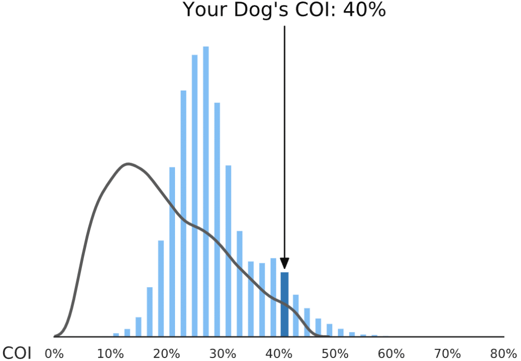 Genetisk COI måler andelen af hundens genom (hundens gener), hvor generne på moderens side er identiske ved fælles ophav (arvet fra samme forfædre) som generne på faderens side. Jo højere din hunds indavlskoefficient (procentdelen), desto mere indavlet er din hund.